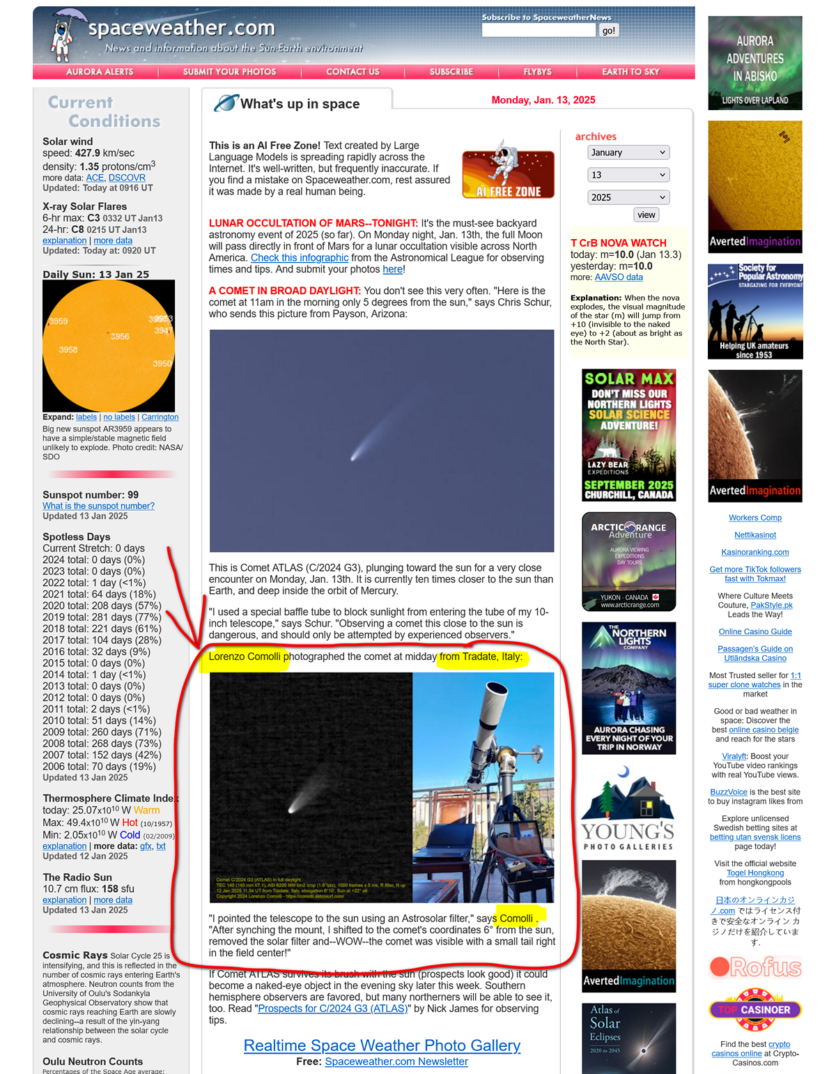 Spaceweather homepage on 13 Jan 2025, see screenshot below.