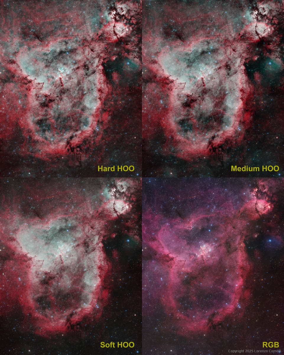 Ha and OIII, 5 min for RGB) North panel: 280:190:20:20:20, total 8 h 50 min South panel: 220:210:25:25:25, total 8 h 25 min RGB only: total 2 h 15 min |